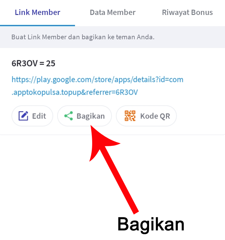 Yang perlu anda lakukan adalah hanya membagikan link referral saja. Jika ada orang yang mendaftar lewat link referral anda maka otomatis akan ada pemberitahuan ke nomor SMS/WA anda bahwa ada orang yang mendaftar via link referral anda, jadi anda tidak perlu mendaftarkannya lagi secara manual, dan jika orang yang mendaftar tadi melakukan transaksi isi pulsa, kuota atau pembayaran lainnya maka otomatis anda akan mendapatkan bonusnya.