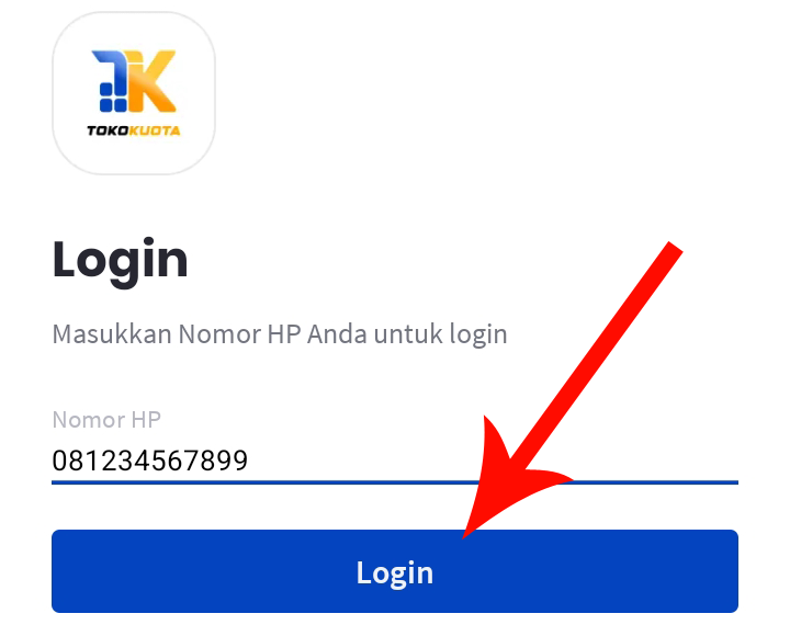 3. Masukkan nomor ponsel/HP anda yang masih aktif. Contoh: 081234567899 . Lalu klik Login.