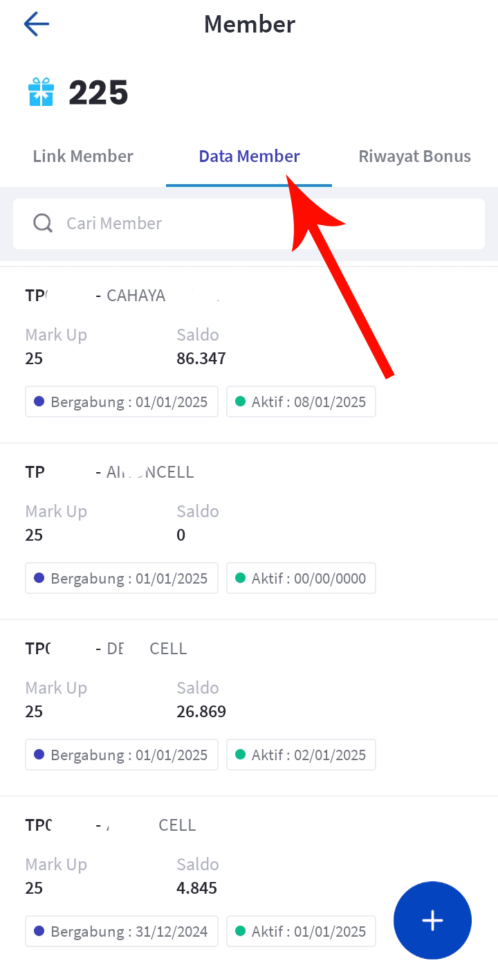 4. Setelah selesai terdaftar, silakan cek di aplikasi di HP anda. Maka nomor kode ID dan nama istri / anak / keluarga yang anda daftarkan akan berada di bagian Data Member.
