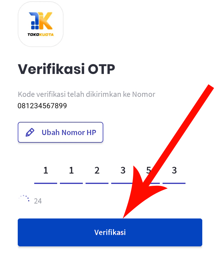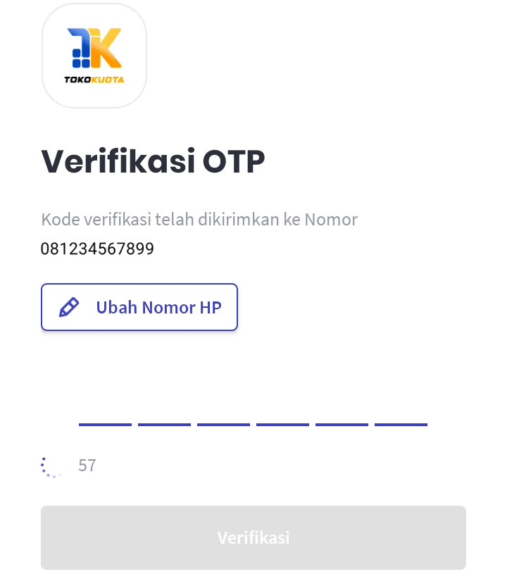 8. Buka notifikasi Whatsapp anda yang berisi kode OTP pendaftaran, lalu masukkan 6 angka kode OTP-nya ke aplikasi lalu klik Verifikasi.